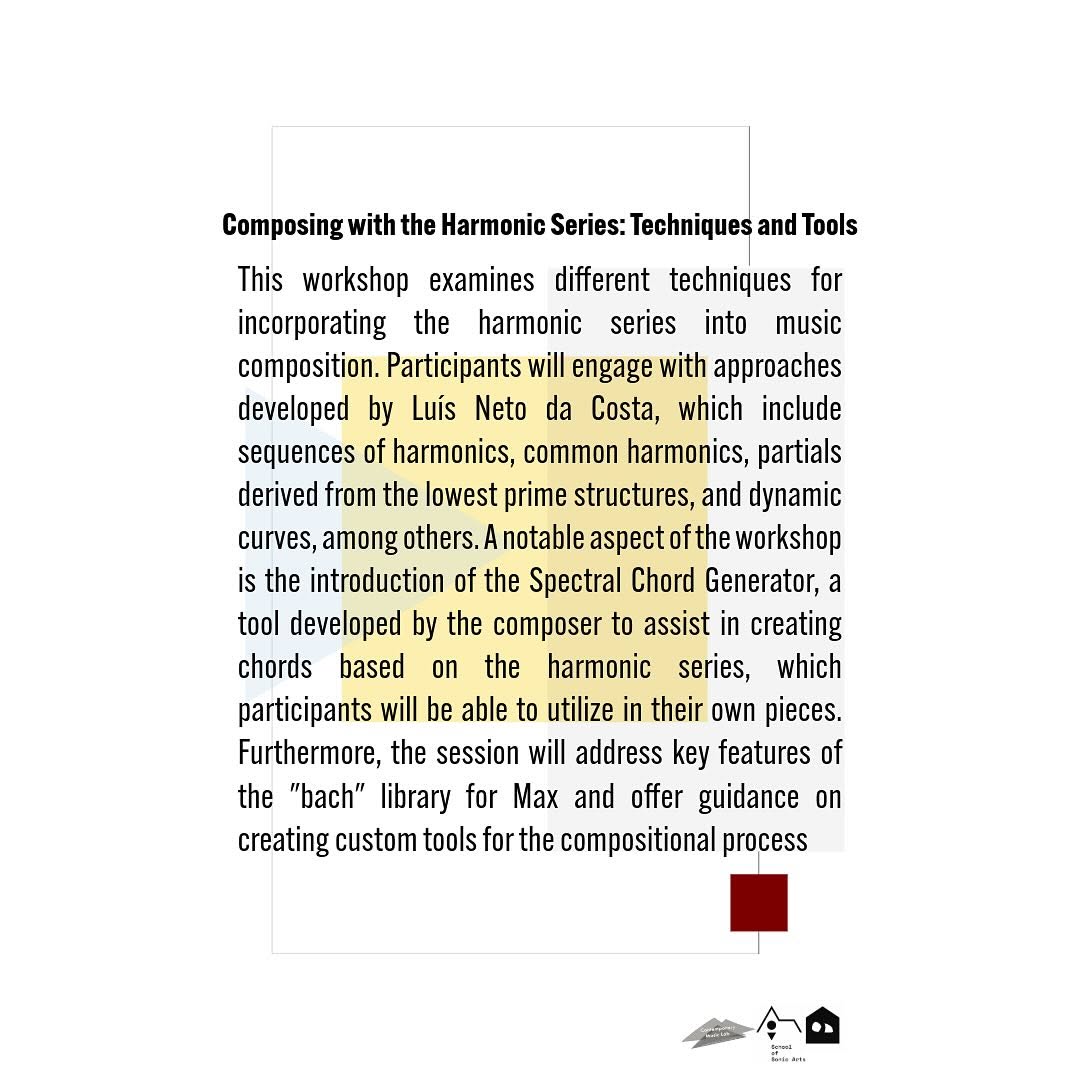 In June of this year, I will be teaching a workshop at the School of Sonic Arts – Tehran. This is accomplished in collaboration with the Contemporary Music Lab at Aristotle University of Thessaloniki. I will present the techniques and tools that I have been using in my music related to the harmonic series.
