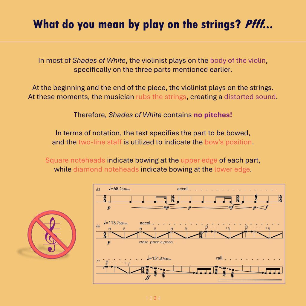 Bowing the body of the violin: the sounds of ‘Shades of White’